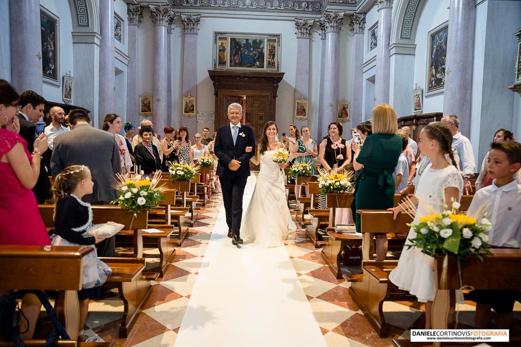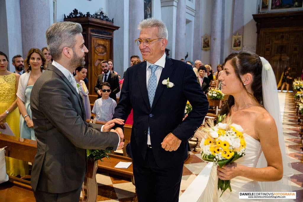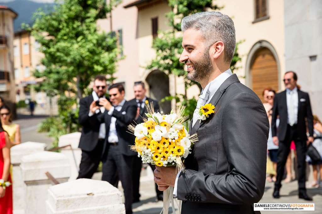 L’arrivo è stato molto emozionante, Francesco da gentiluomo le ha consegnato il bouquet e le ha dato un bacio sulla fronte.