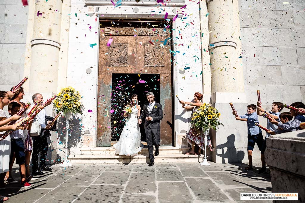 A li a poco sono diventati marito e moglie ed è giunto il momento dell’uscita che è stata resa spettacolare dal lancio di coriandoli.