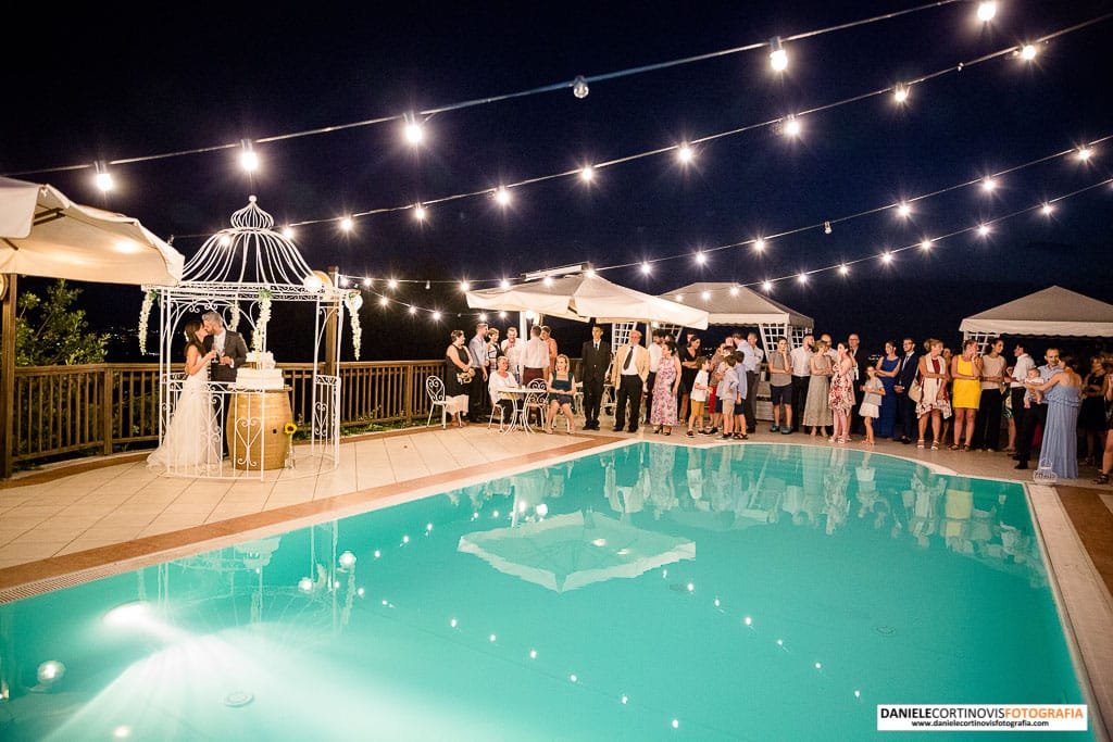 La festa è proseguita tra risate e chiacchiere sino al taglio della torta fatto a bordo piscina.