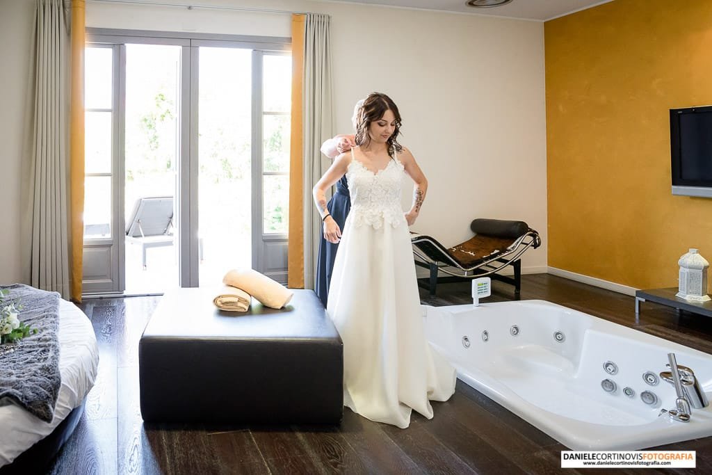 Per la vestizione Nicol si è fatta aiutare dalla mamma e dalla sua testimone. Non è scappato qualche momento d’emozione durante la preparazione