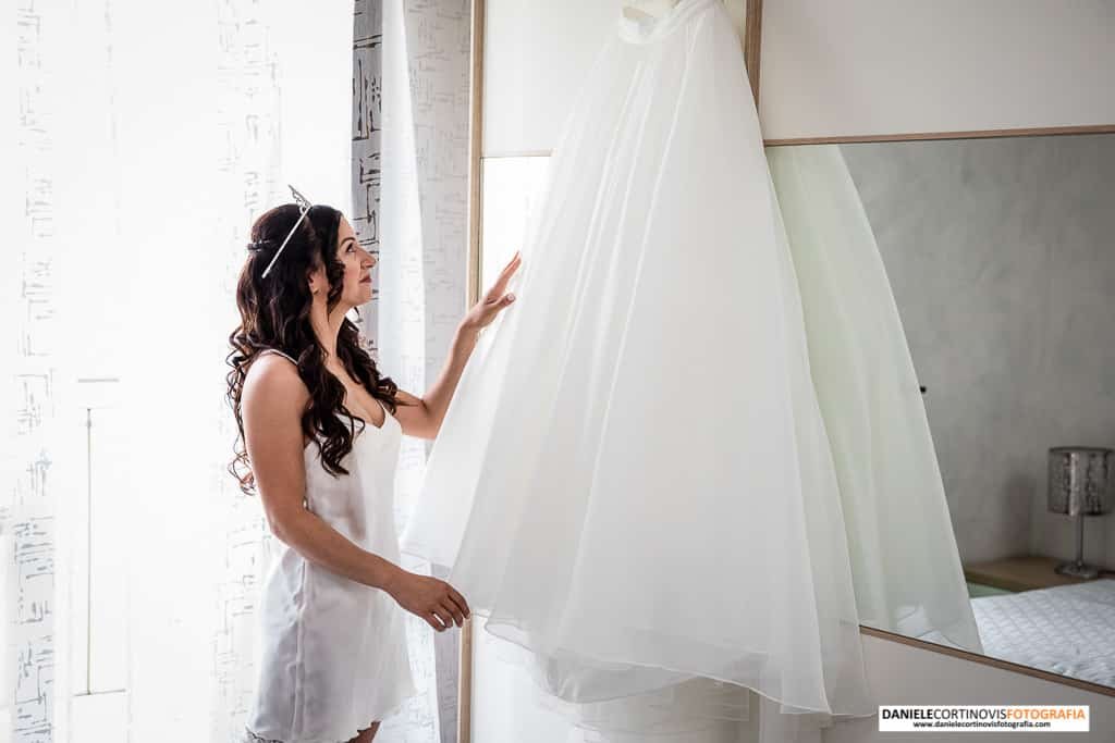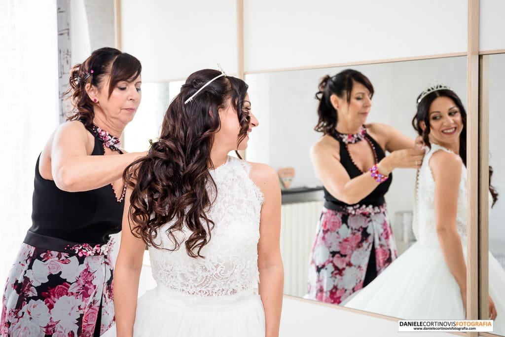Al momento di indossare l’abito qualche lacrimuccia è scesa ed è stato un momento emozionante sia per lei che per la mamma che la stava aiutando.