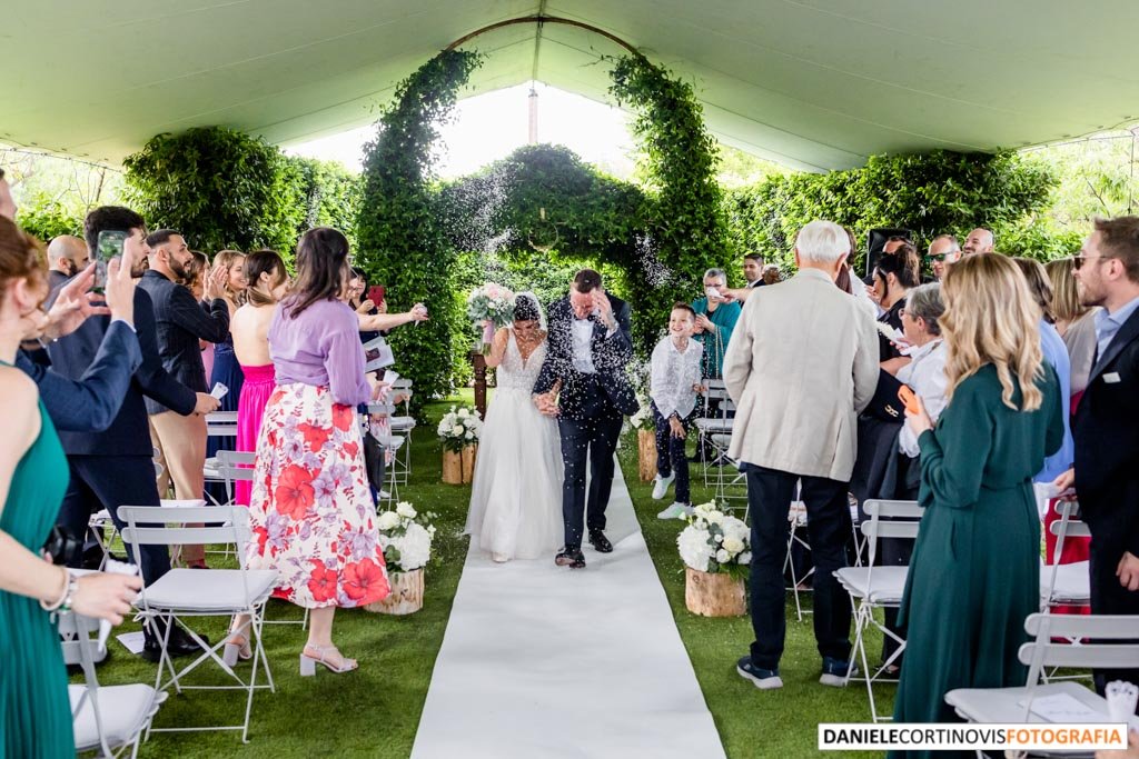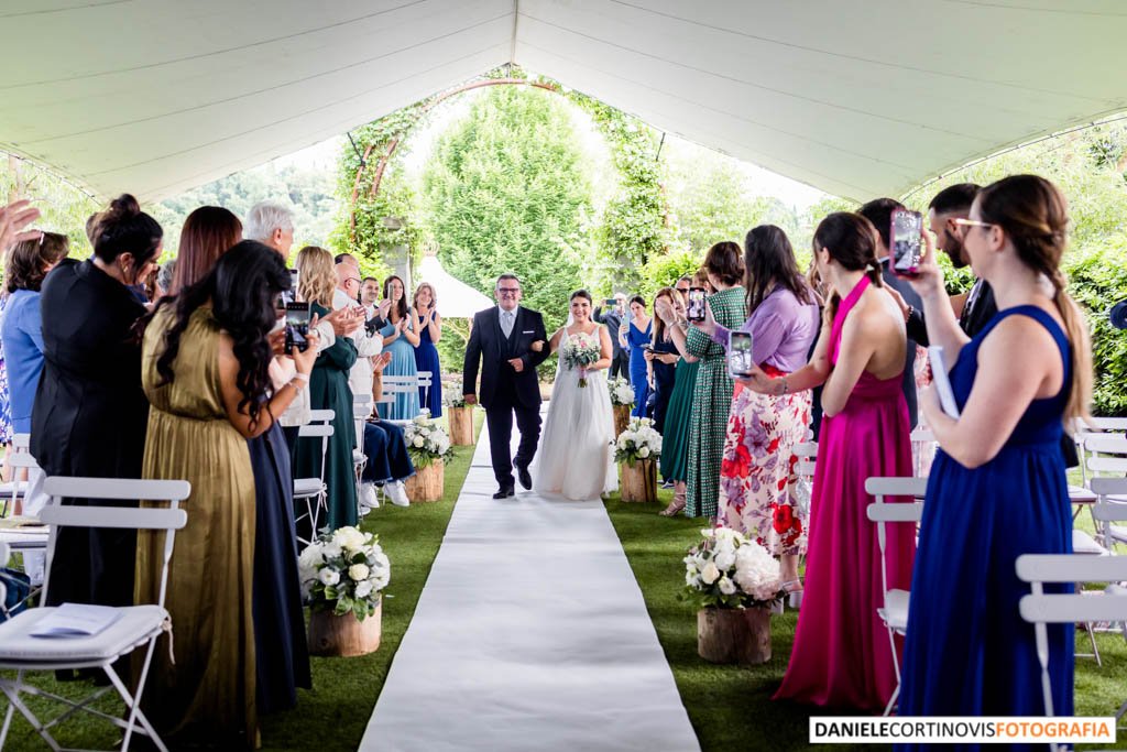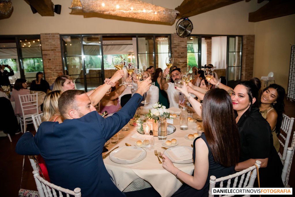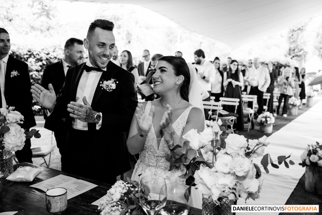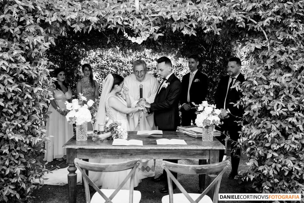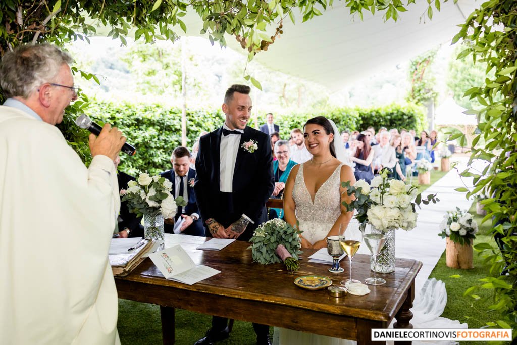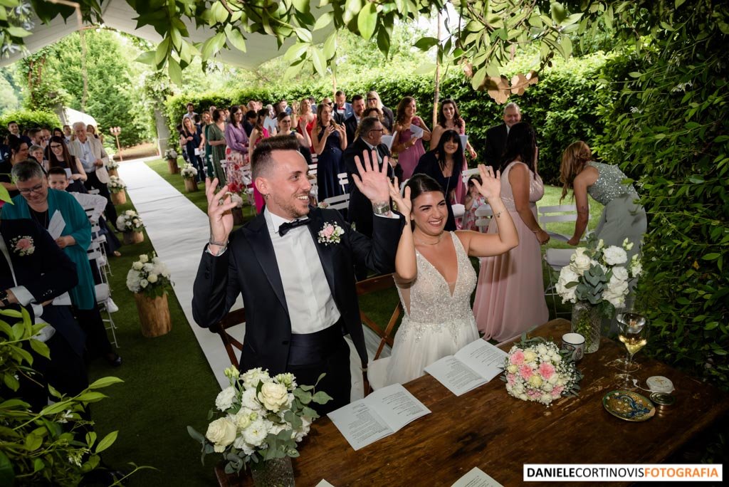 La cerimonia in rito religioso si è svolta sotto il tendone della location celebrata dal mitico Don Bruno che è riuscito come sempre a coinvolgere tutti i presenti.