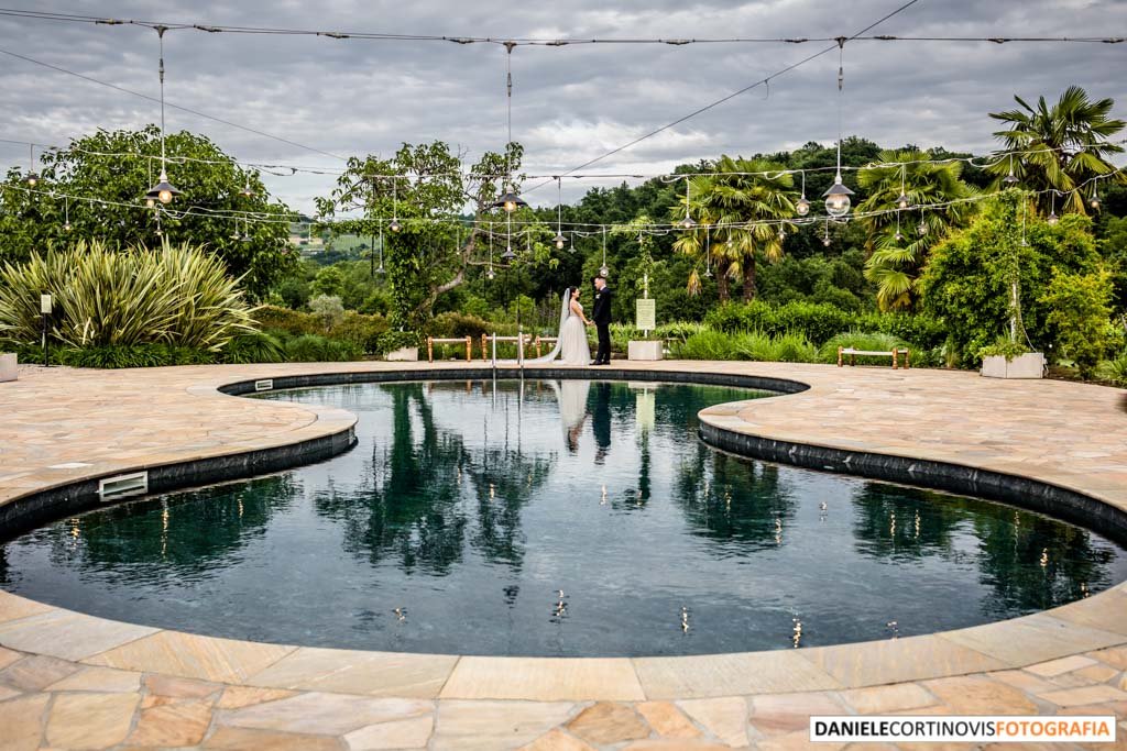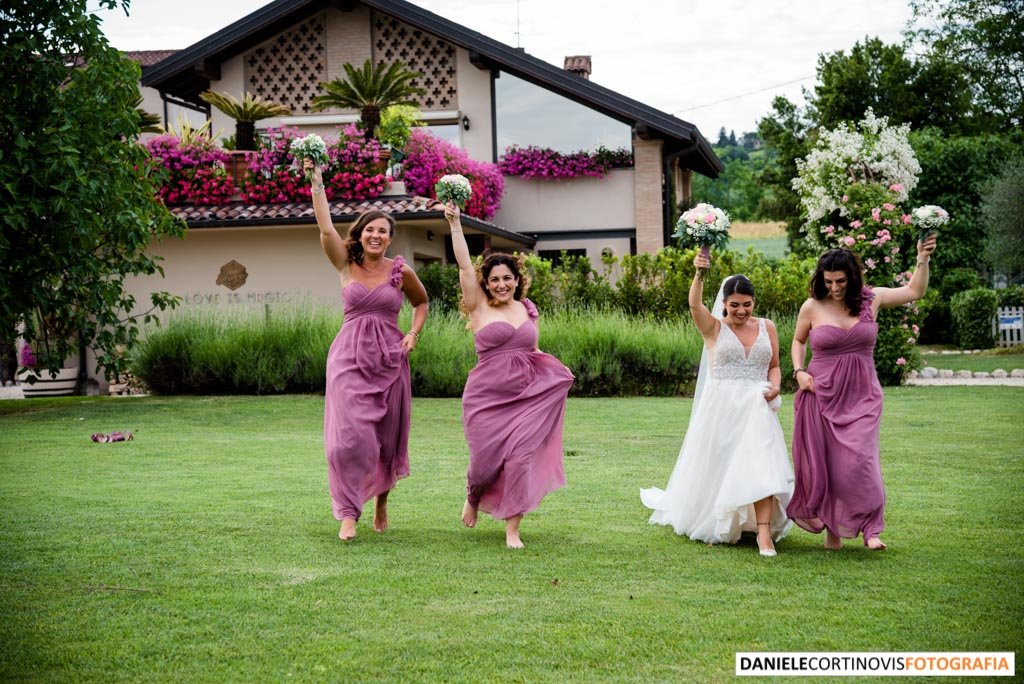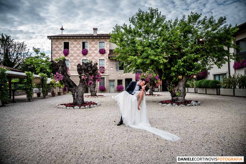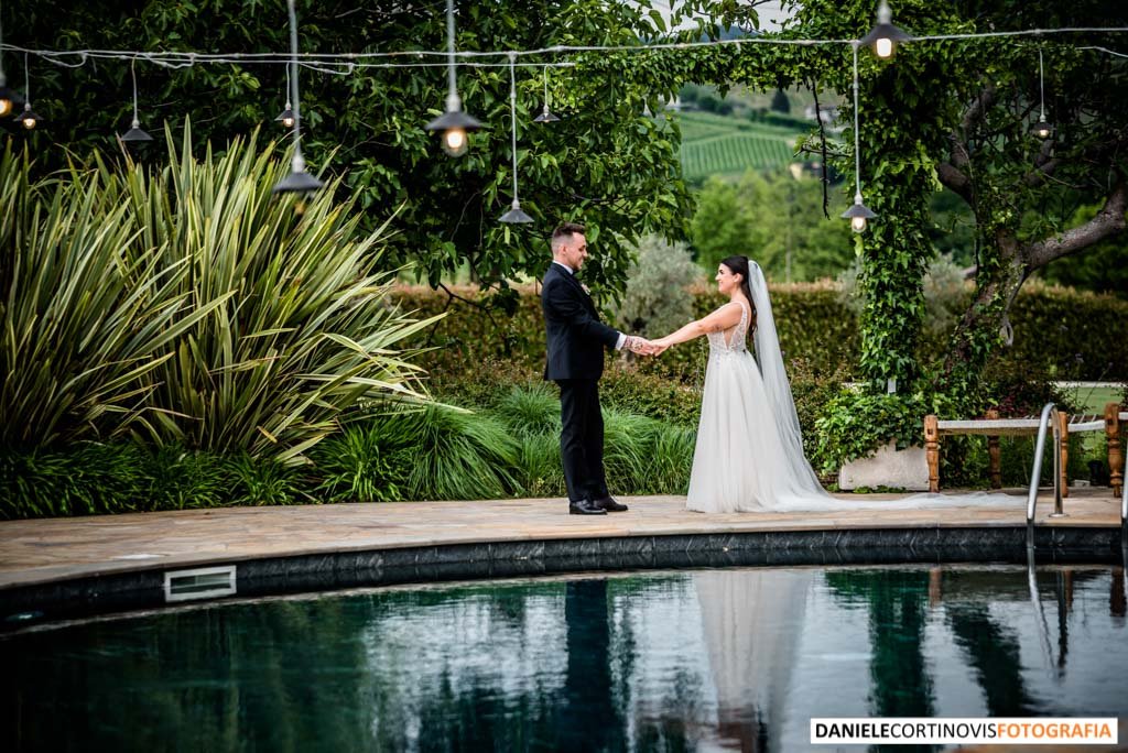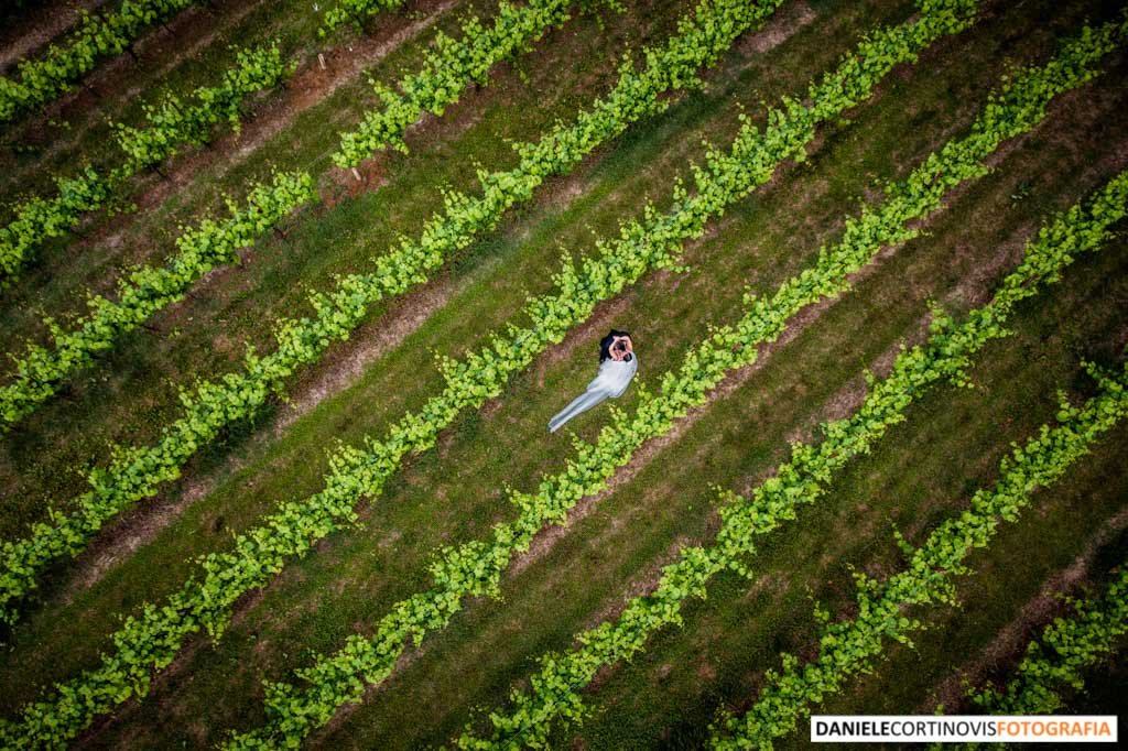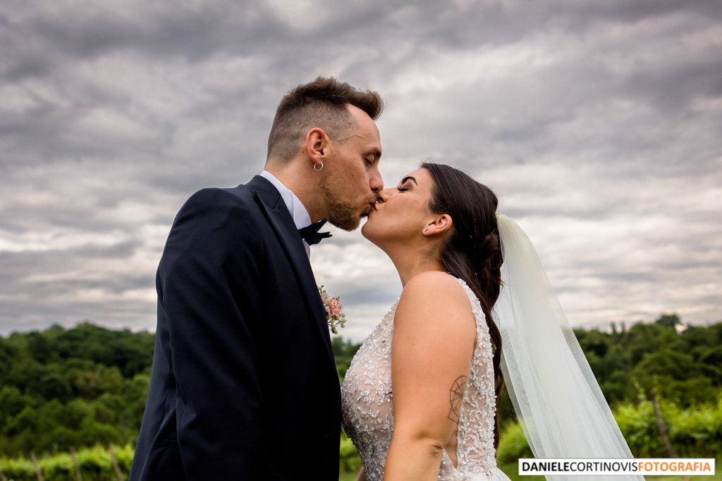 Dopo il taglio torta sulla pedana immersa nelle vigne gli sposi hanno fatto il loro primo ballo e successivamente il lancio del bouquet.