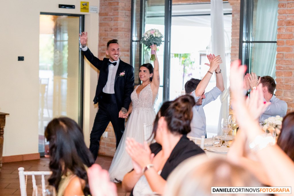 Dopo la loro festosa uscita e dopo essere divenuti marito e moglie la festa ha avuto inizio con il ricevimento.