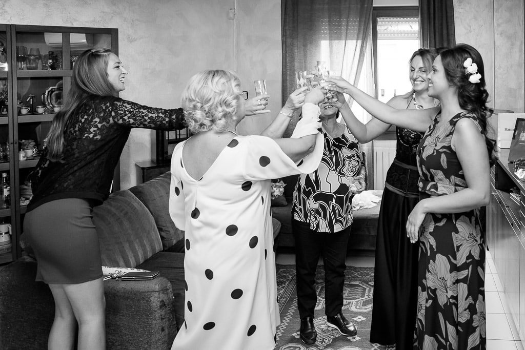 Tutte insieme compresa la mamma l’hanno aiutata ad indossare il suo meraviglioso abito da sposa.