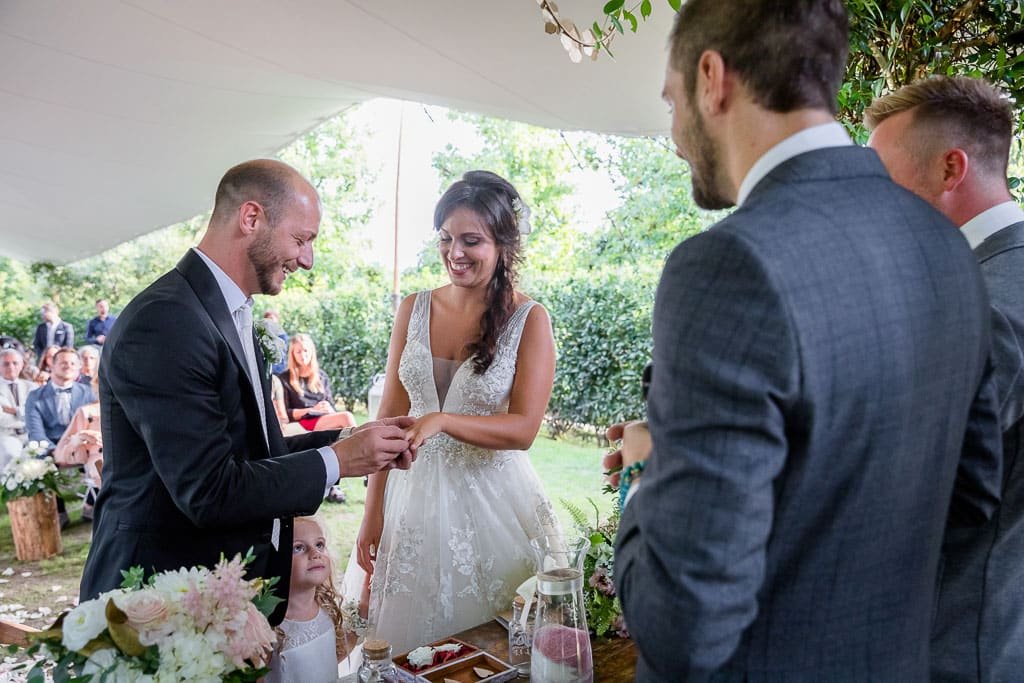 La cerimonia è stata una cerimonia molto sentita, ricca di emozioni da parte degli sposi e degli invitati anche perchè a leggere i vari pensieri sono stati i loro migliori amici.