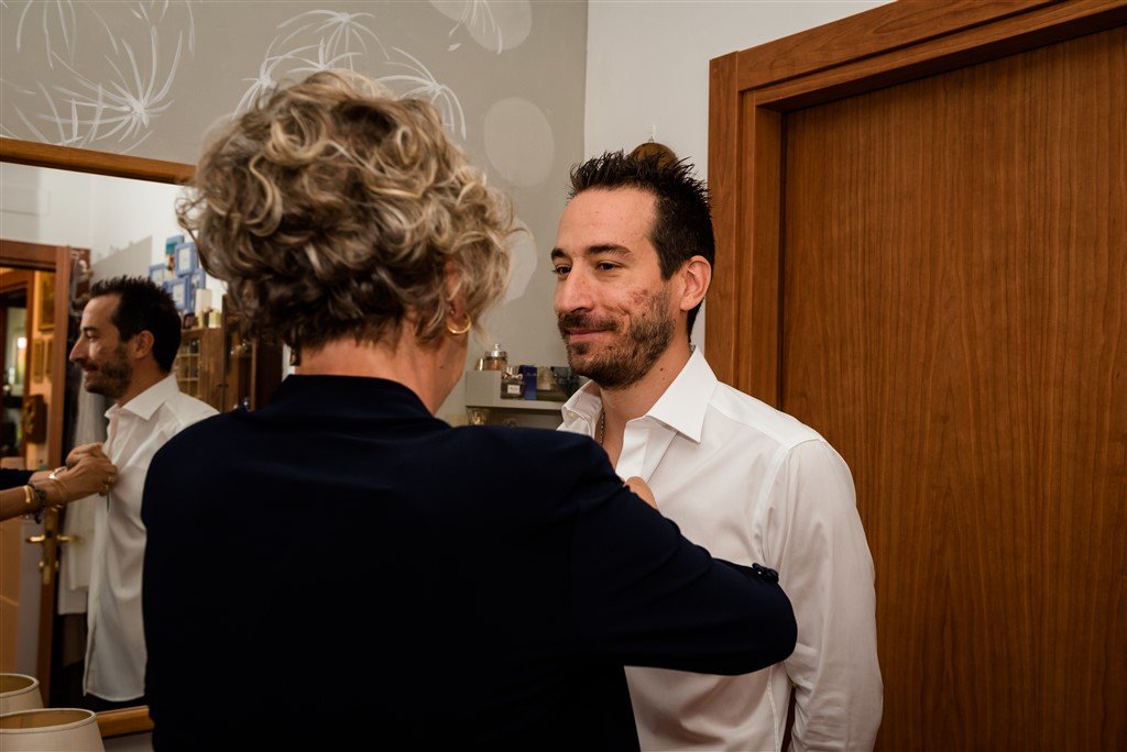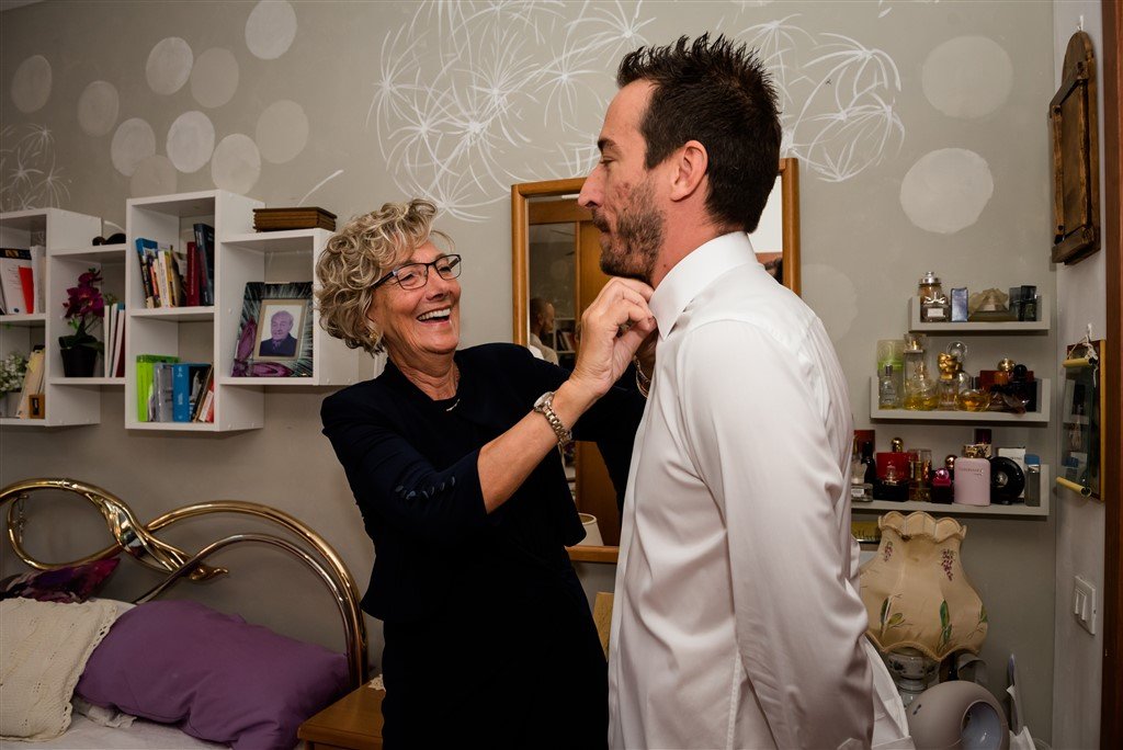 La preparazione del trucco e parrucco e la vestizione si sono svolte in piena allegria in compagnia anche delle sue damigelle che l’hanno aiutata e l’hanno supportata per il momento di emozione che stava vivendo.