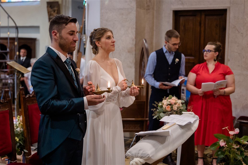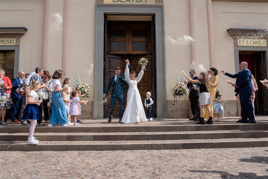 La cerimonia in rito religioso è stata molto partecipata da amici e parenti e, dopo essere divenuti finalmente marito e moglie, alla loro uscita sono stati accolti in modo festoso.
