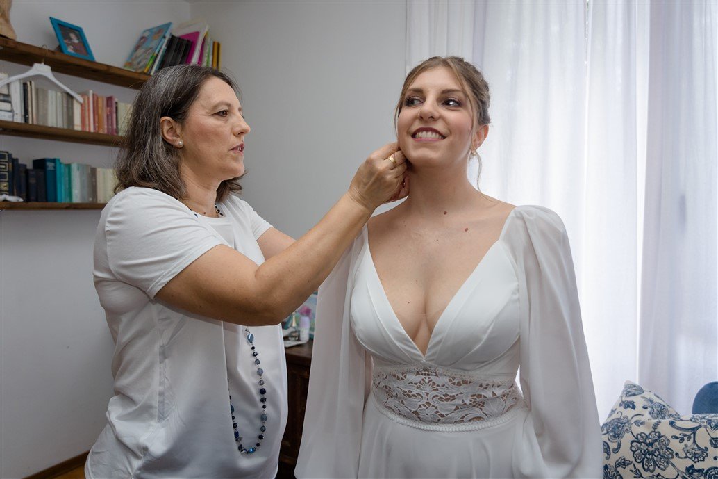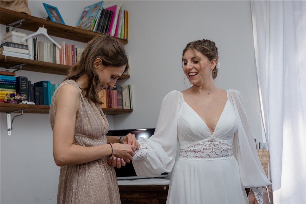 Le sorelle hanno aiutato questa giovanissima sposa a indossare l’abito di nozze tanto sognato sin da bambina.