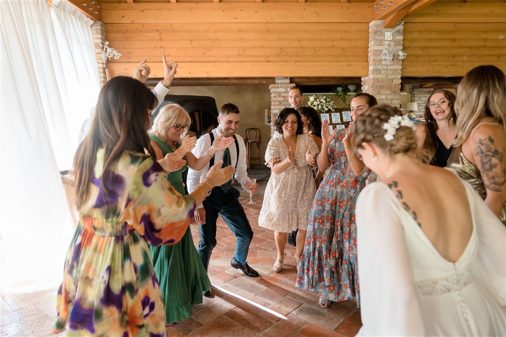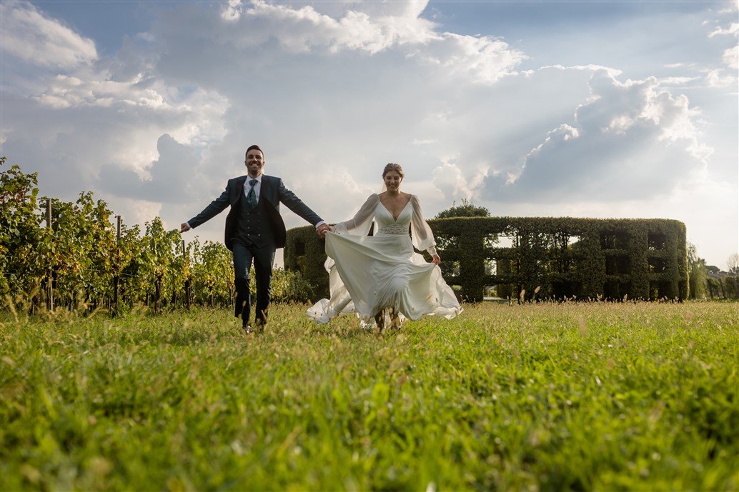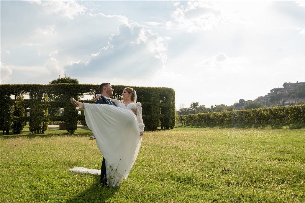 Hanno proseguito la loro grande giornata di Matrimonio nella bellissima location in Franciacorta la Cascina San Lorenzo, una corte bellissima circondata da viti e con un caratteristico roccolo.