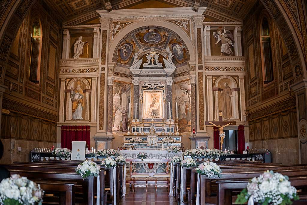 La cerimonia si è svolta nel bellissimo santuario dello Zuccarello, una chiesa arroccata a dir poco favolosa, con un tetto completamente affrescato e lavorato e una luce al suo interno morbida e tenue.