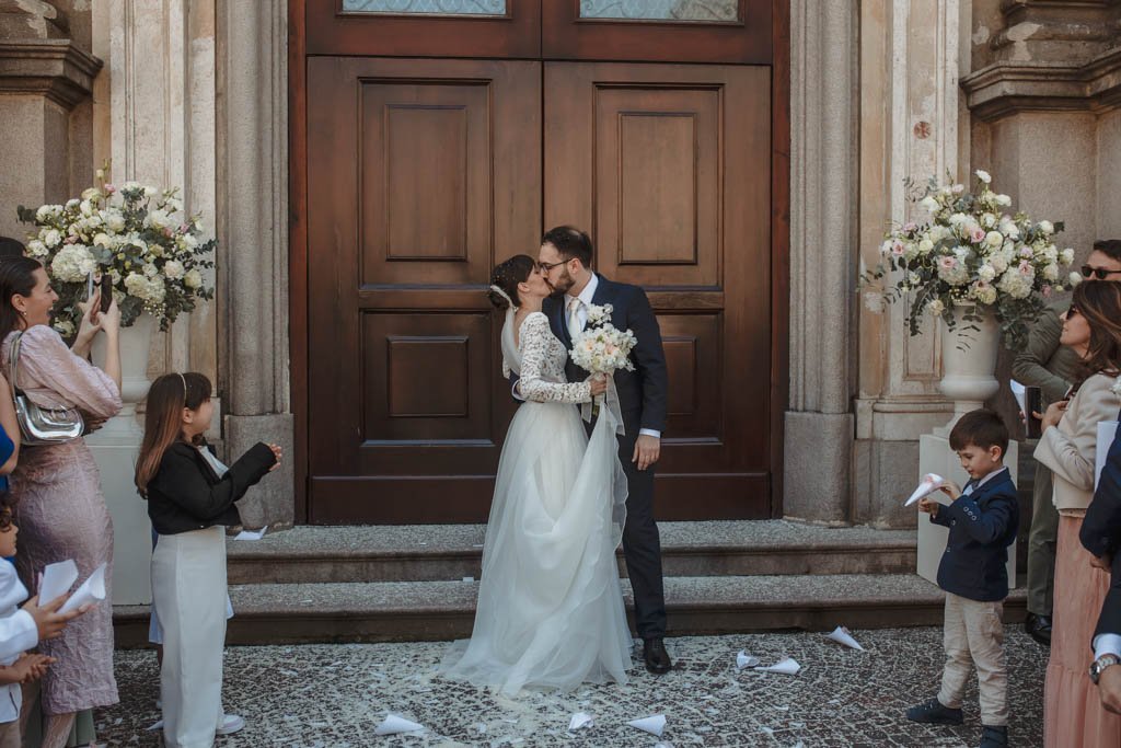 Una cerimonia religiosa ha reso marito e moglie Michela e Alberto che, all’esterno, sono stati festeggiati da tutti i parenti.