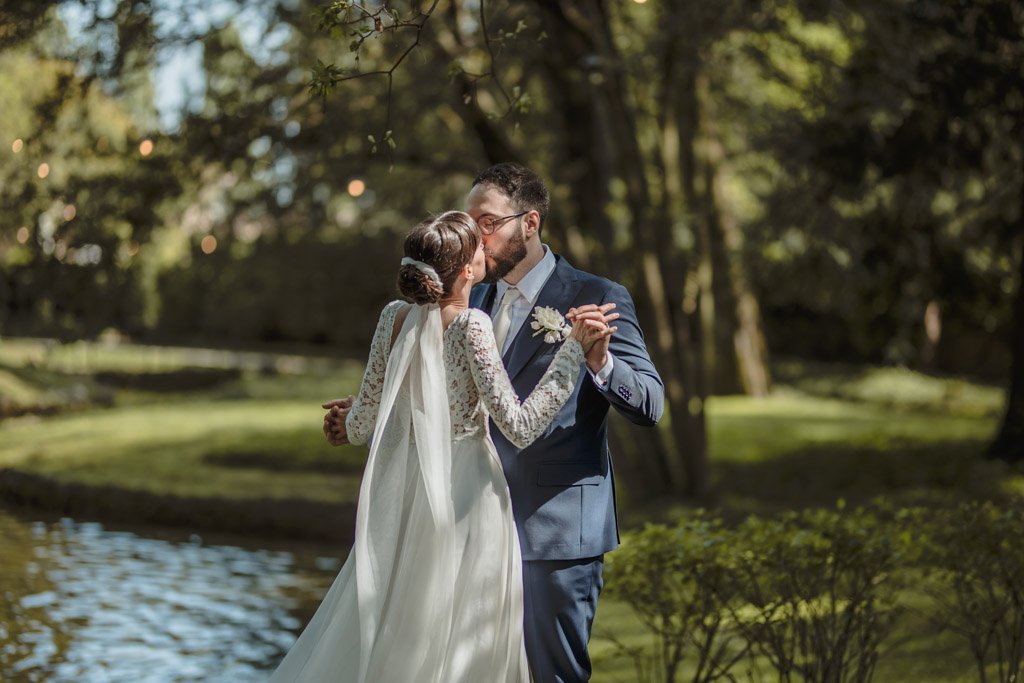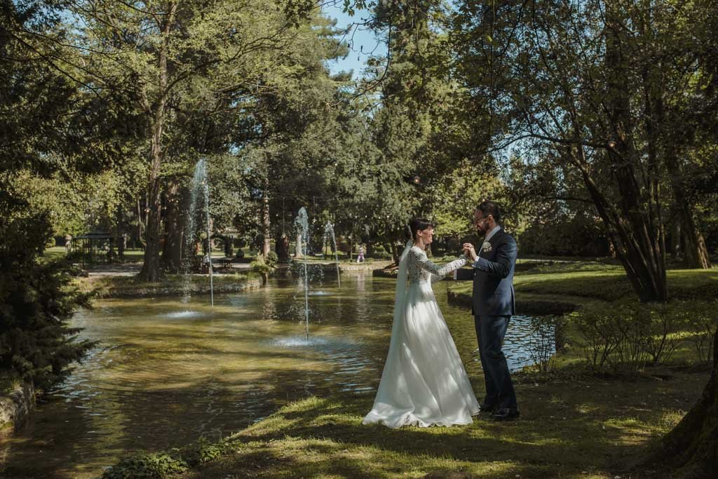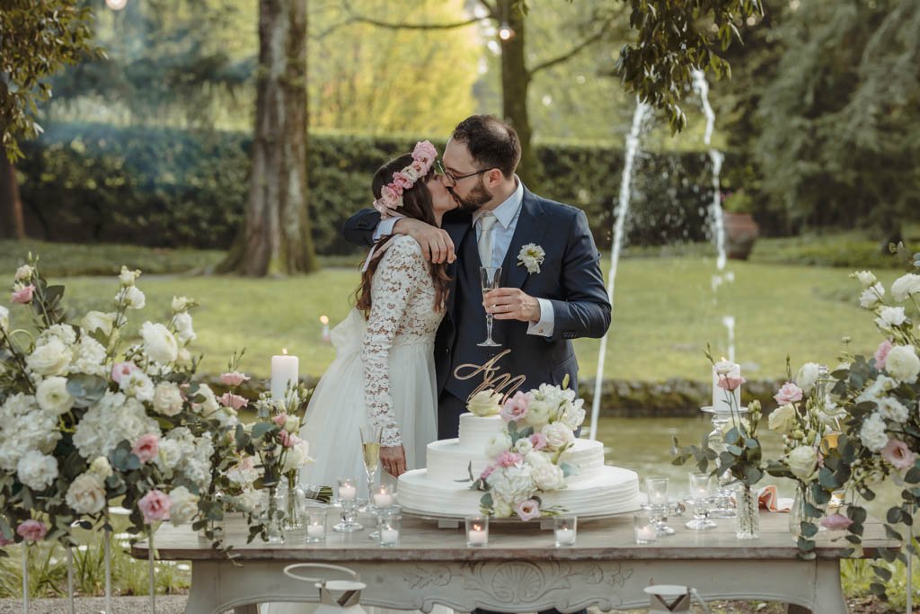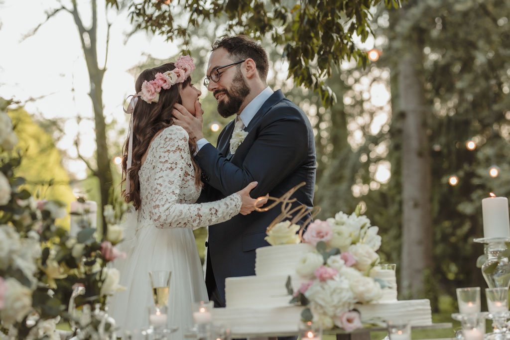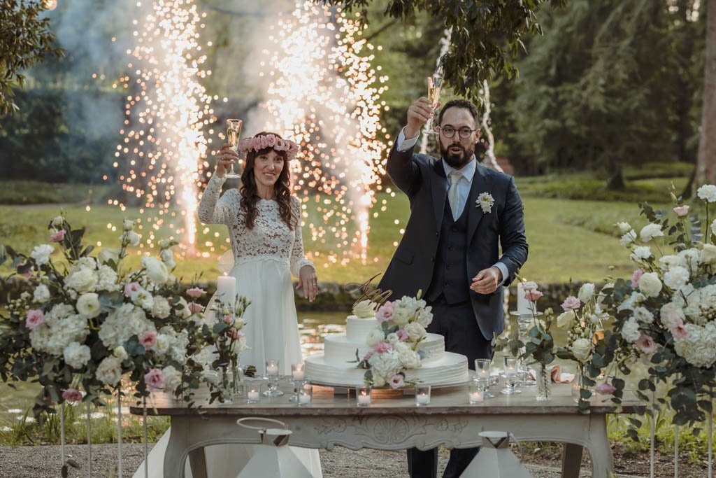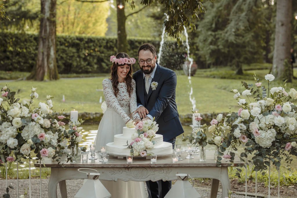 Arrivato il momento della torta, sposi e invitati, si sono ritrovati al laghetto, un luogo magico dove è stata tagliata la torta e stappato la prima bottiglia tra marito e moglie.