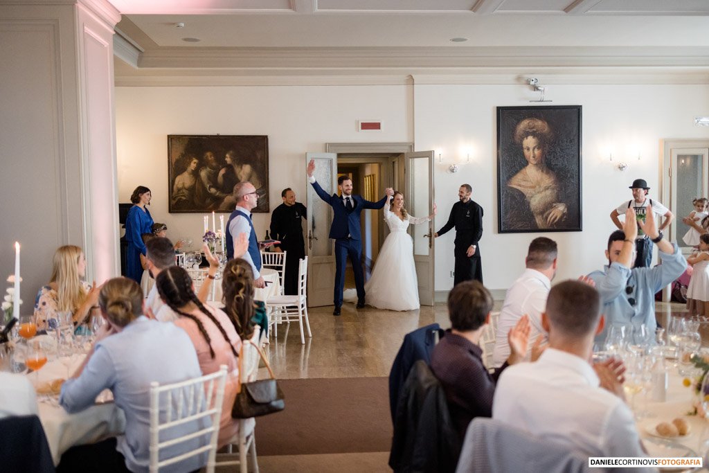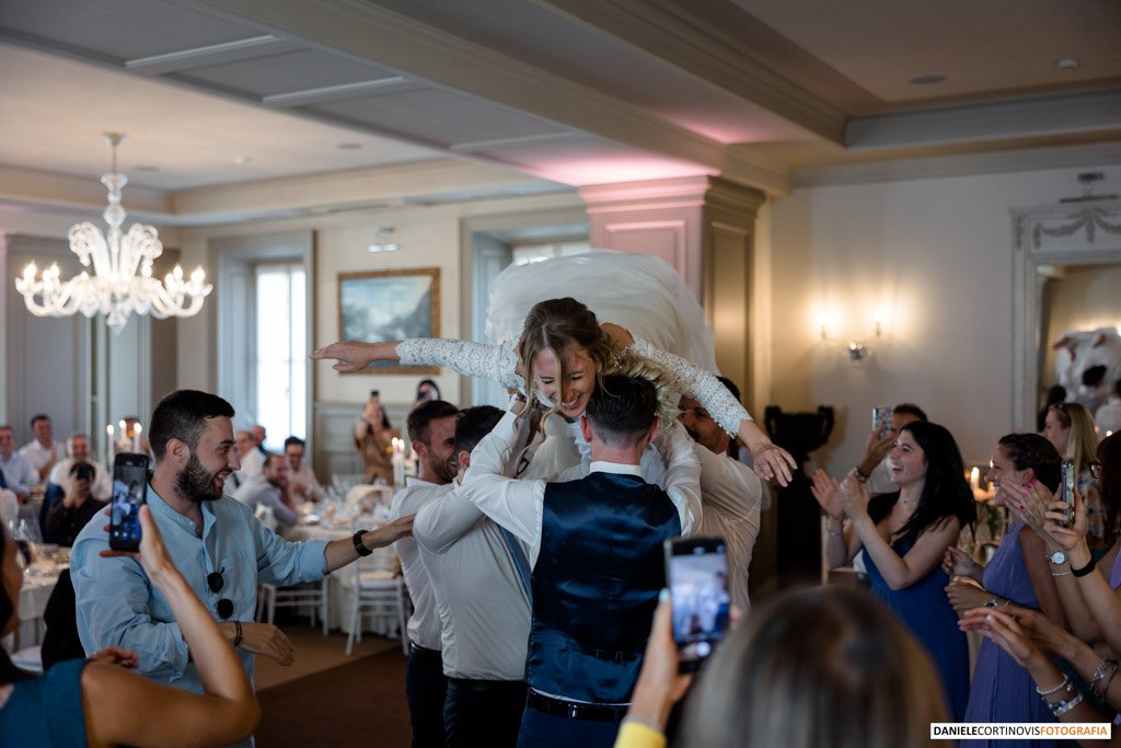 Dopo i festeggiamenti all’esterno della chiesa gli sposi avevano deciso di proseguire i festeggiamenti in Villa Acquaroli a Carvico in provincia di Bergamo.