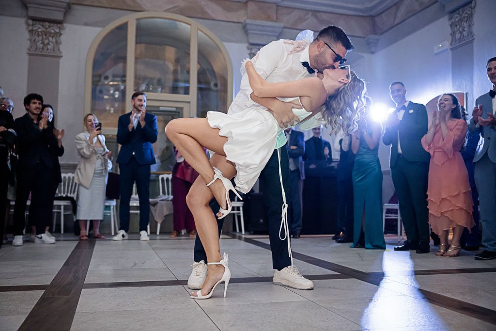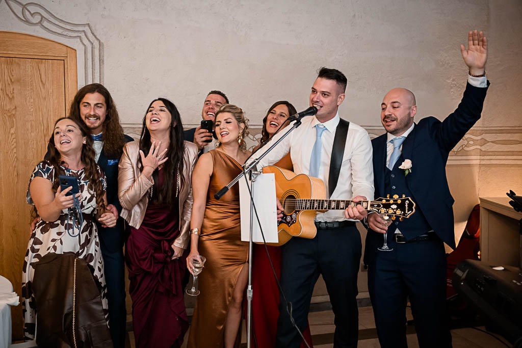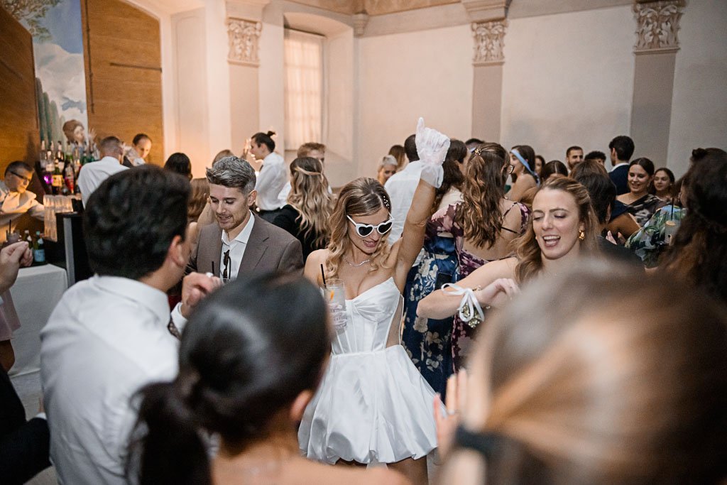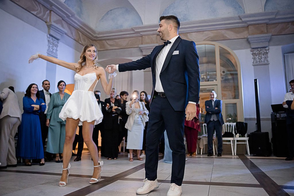 Dopo la torta sulla bellissima scalinata esterna della location la giornata di matrimonio è proseguita fra i balli sino a tarda notte.