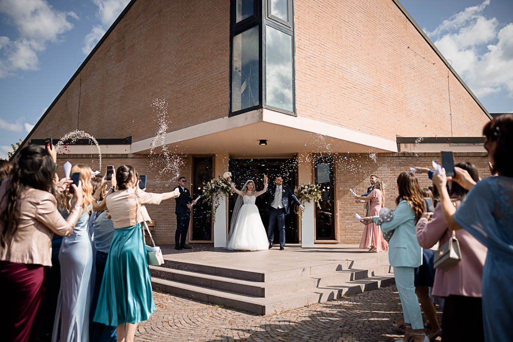 Una cerimonia religiosa ha reso marito e moglie questi due giovani ragazzi e all’esterno sono stati accolti da tutti i presenti.
