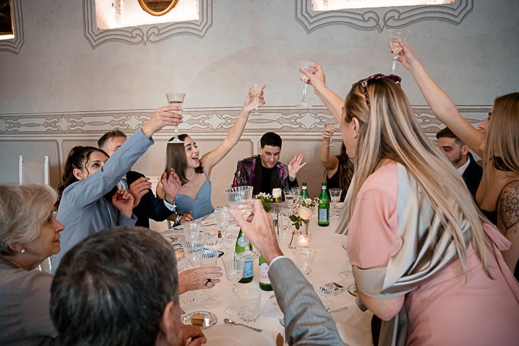 Bellissima la festa che hanno fatto amici e parenti per tutto il giorno anche durante il ricevimento seduto. Hanno voluto festeggiare due giovani ragazzi che credono nell’amore eterno.