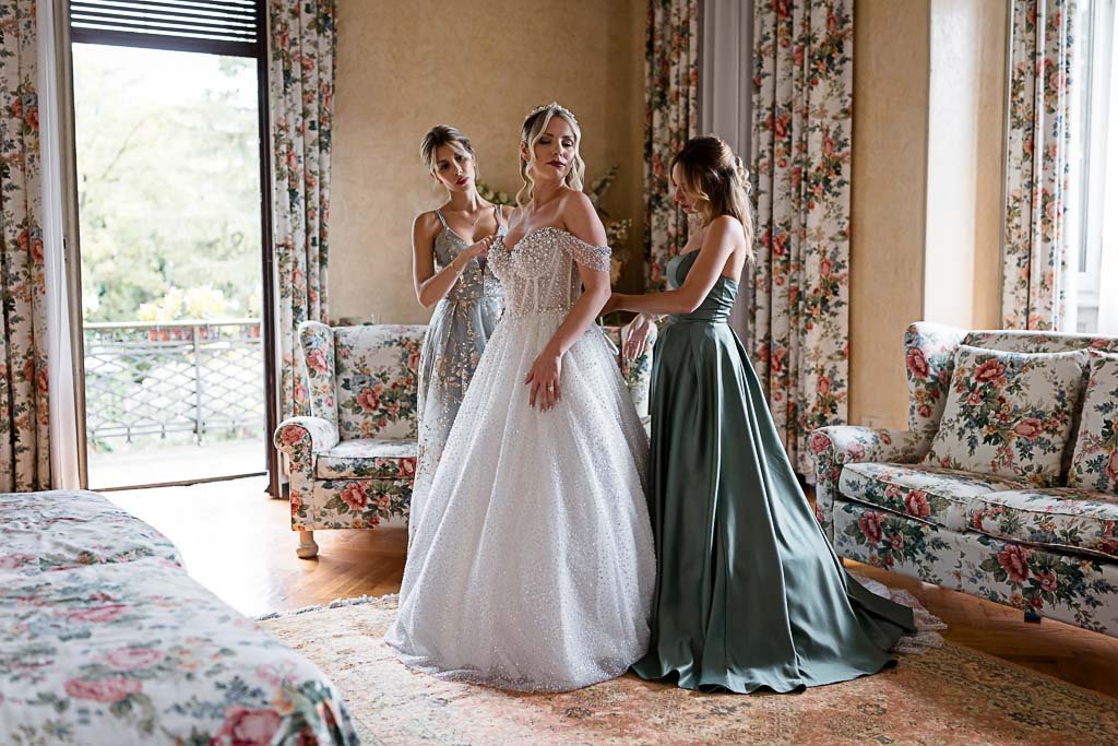 Abbiamo iniziato la grande giornata di matrimonio con la preparazione della sposa, il trucco e la vestizione si sono svolte in un clima bellissimo e di grande gioia. Karine è stata tantissimo supportata dalle sue damigelle che hanno contribuito anche a festeggiare la sposina.