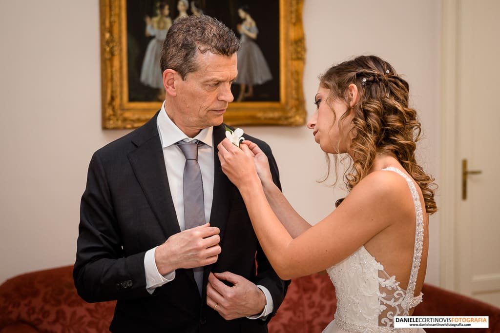 In breve tempo Chiara si è truccata e insieme all’aiuto della sorella e della mamma ha indossato il suo meraviglioso abito da sposa.