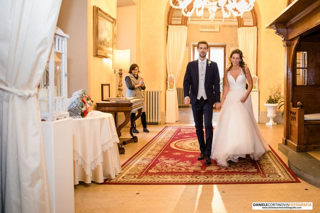 La loro cerimonia è stata in rito civile direttamente in villa nel cantinone, dato che il tempo non prometteva bene.