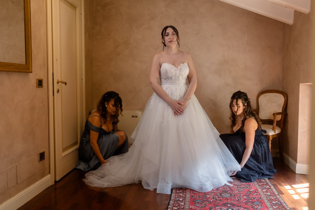 Al momento della vestizione ho visto gli occhio di Marìka illuminarsi, eccolo il momento tanto atteso sin da bambina, il suo abito da sposa.