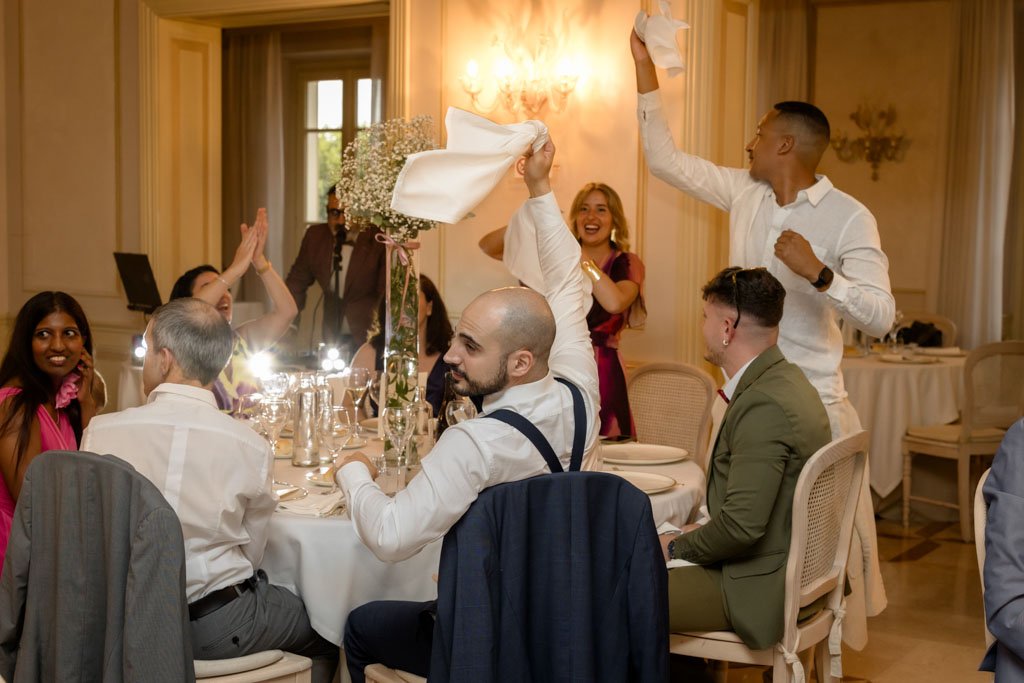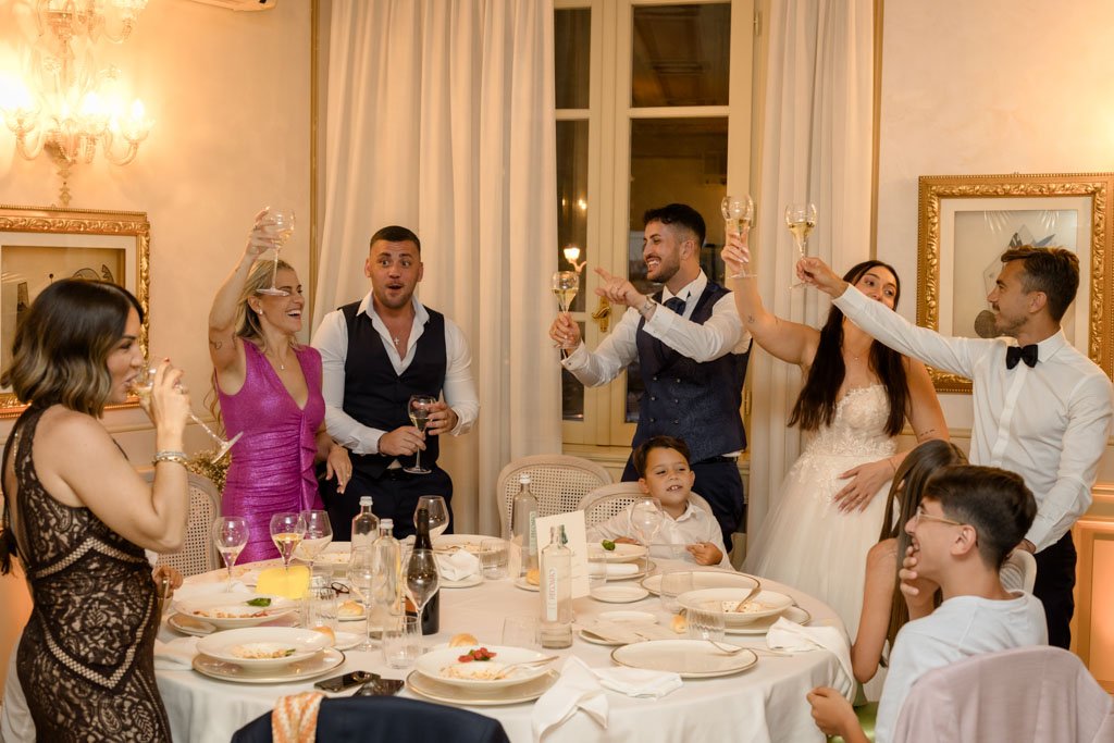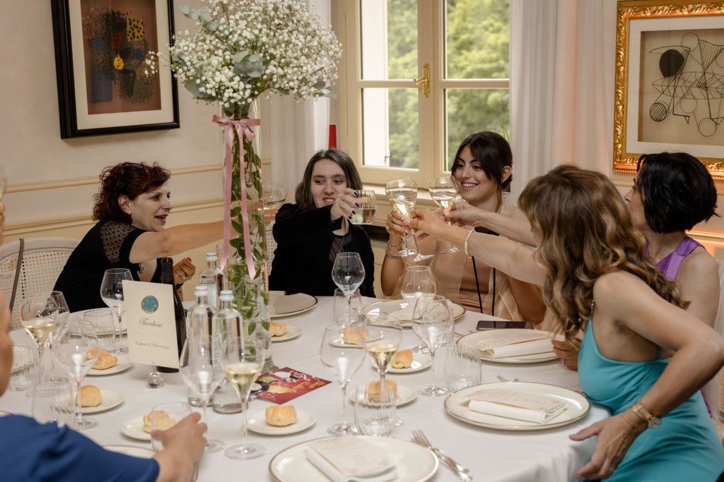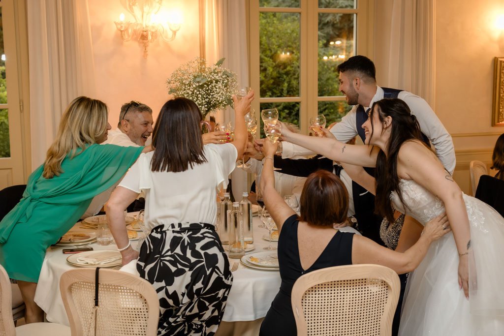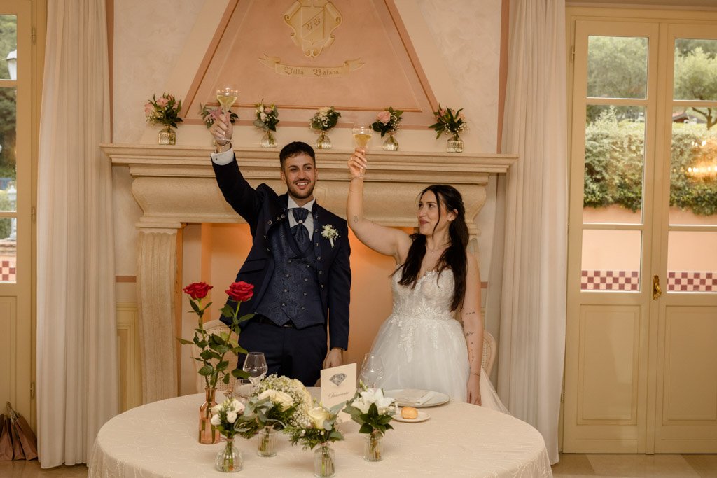 La festa è proseguita all’interno della villa Baiana in provincia di Brescia con la gioia e il calore di amici e parenti.