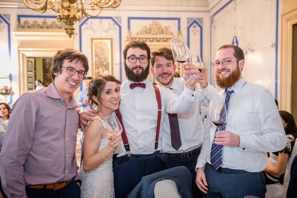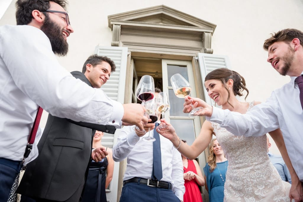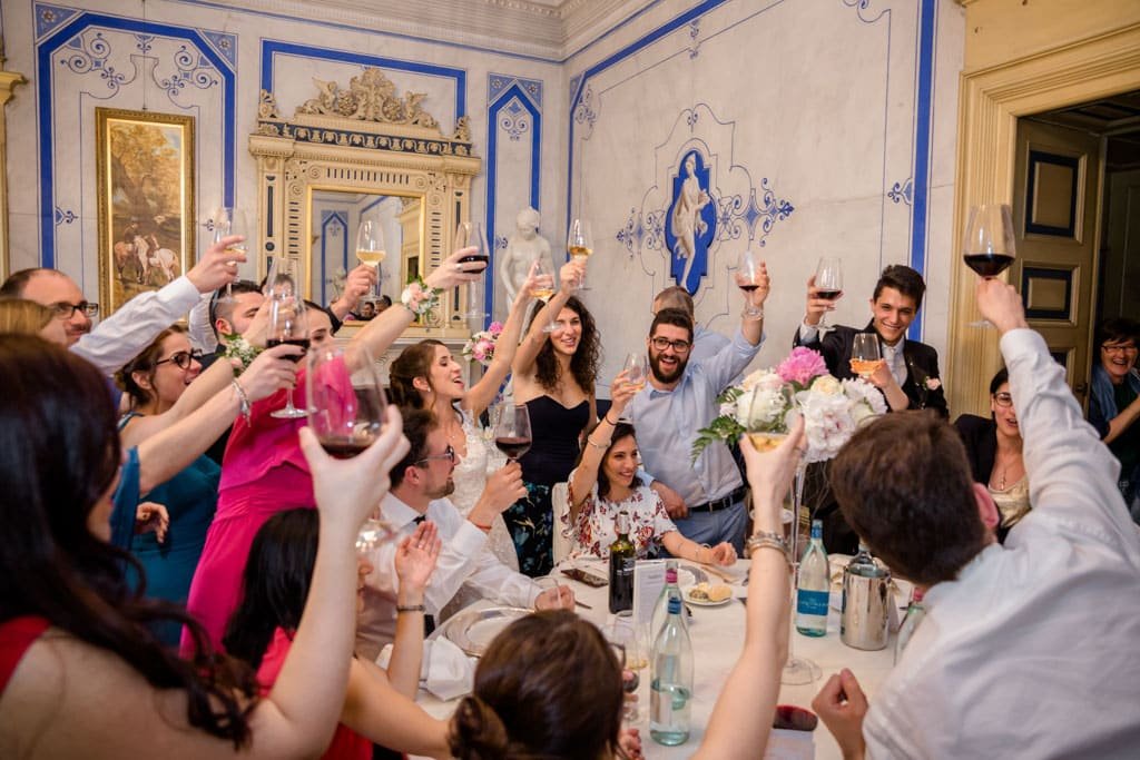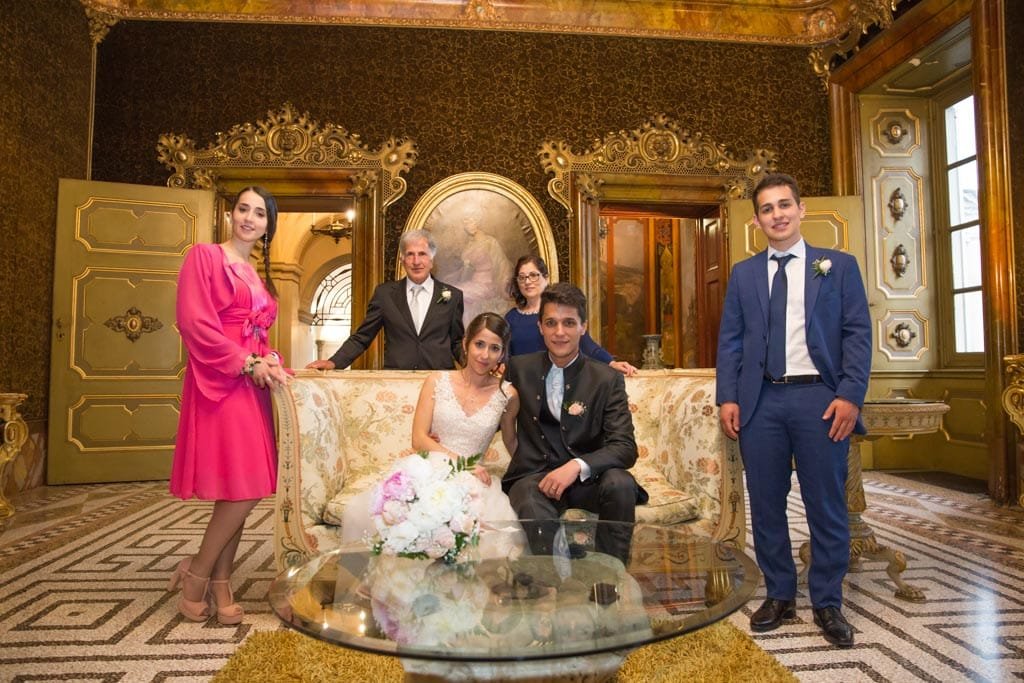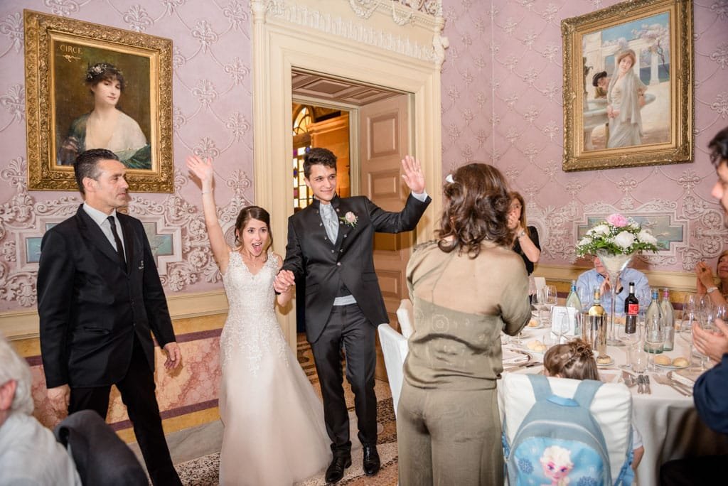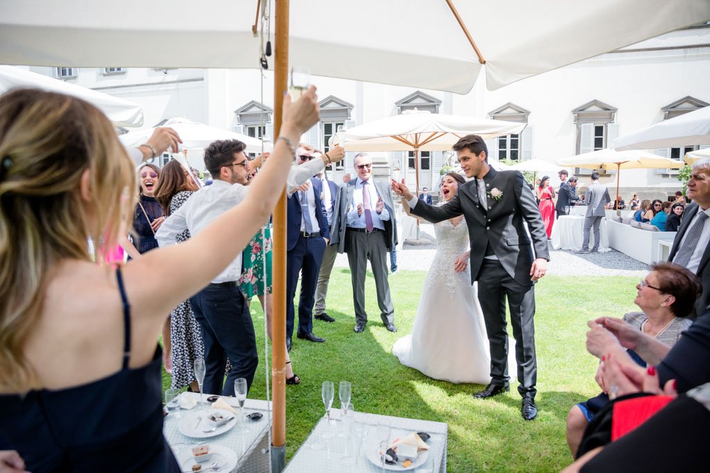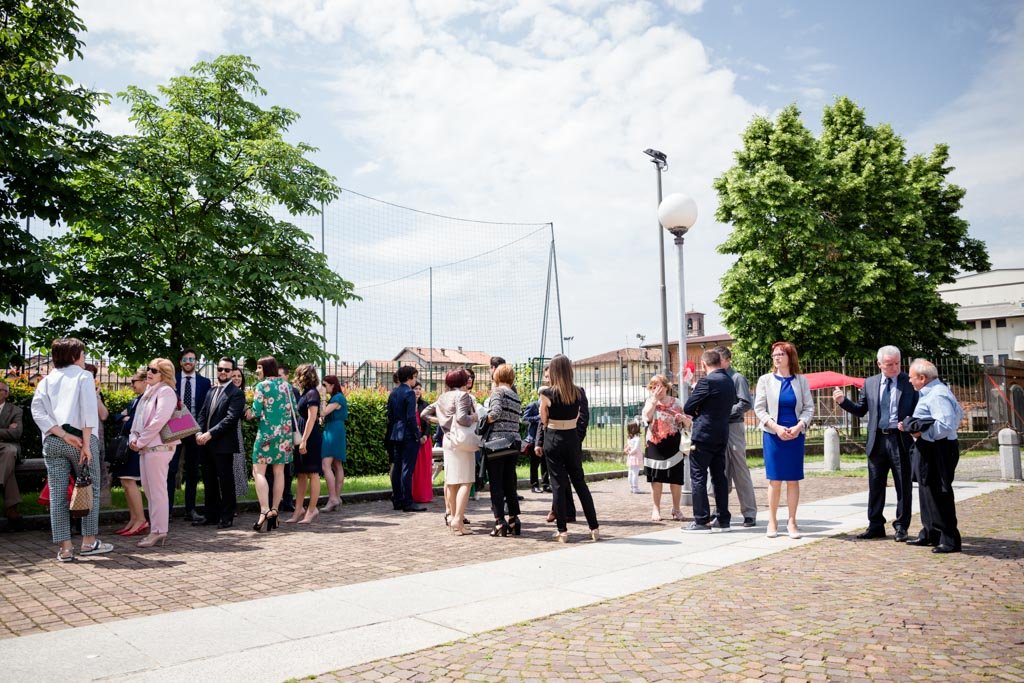 Una festosa uscita dalla chiesa ha dato inizio ai festeggiamenti che sono proseguiti sino a tarda sera alla Villa Caroli Zanchi di Stezzano, in provincia di Bergamo.