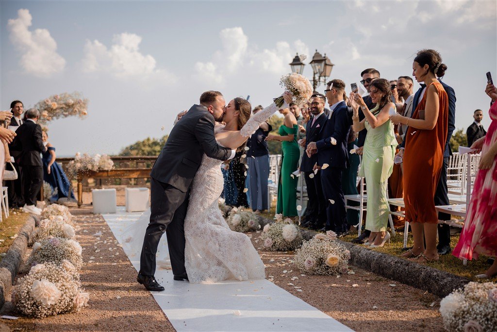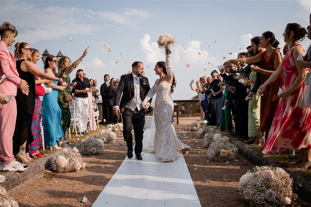 L’uscita è stata bellissima e cinematografica con tutti gli amici e parenti che lanciavano petali in segno di fortuna.